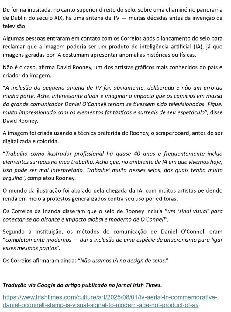 FILATELIA- Antena de TV no selo de Daniel O’Connell