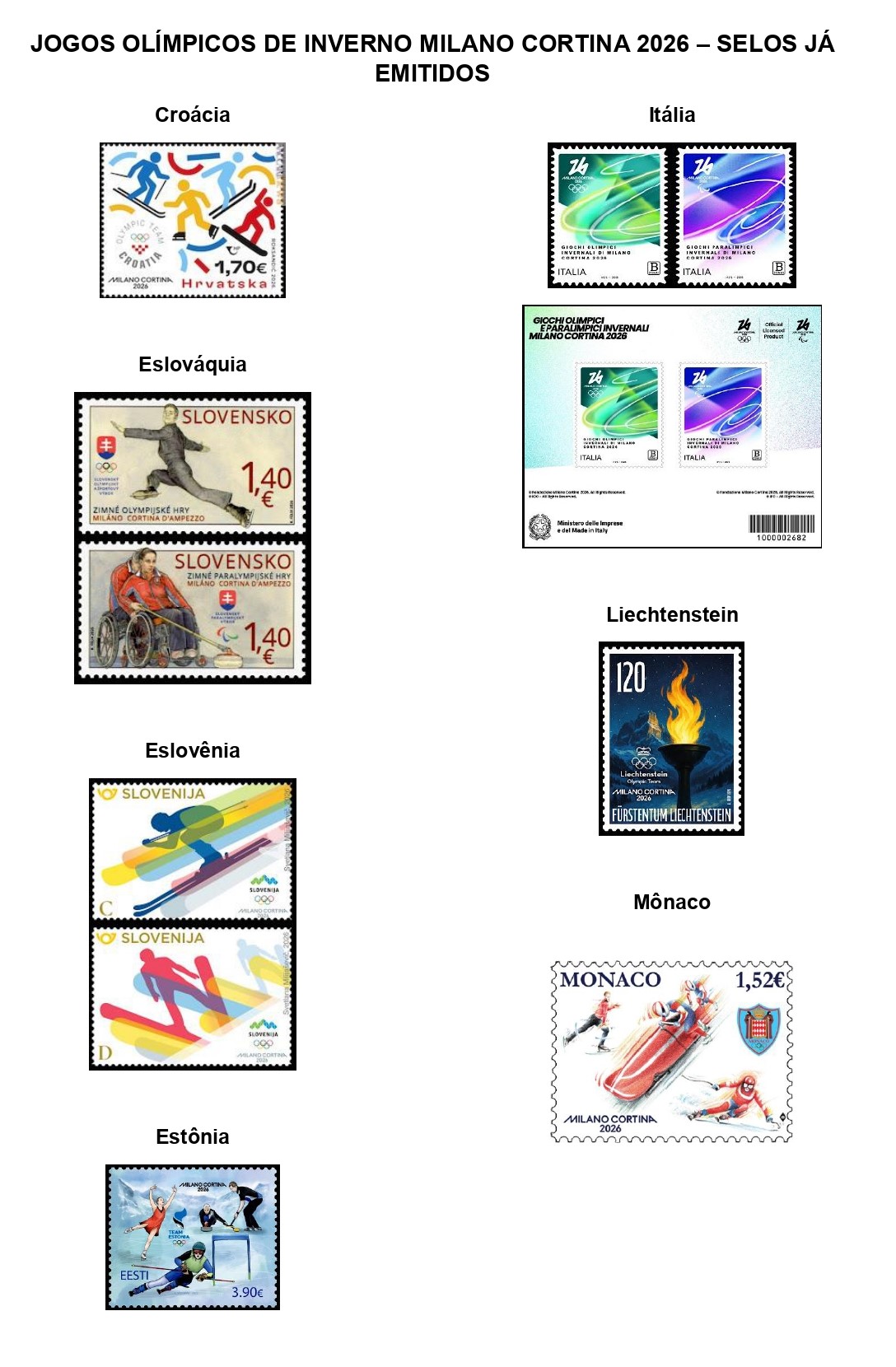 JOGOS OLÍMPICOS DE INVERNO MILANO CORTINA 2026 Compilação do colaborador FILACAP José Paulo Braida Lopes
